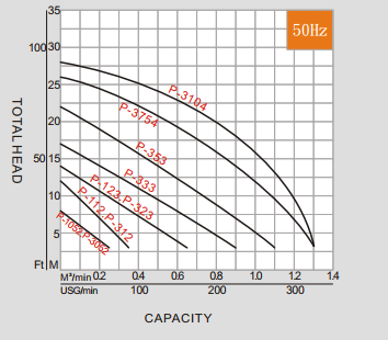 Lưu lượng máy bơm chìm nước thải Grampus P-3754 7.5HP